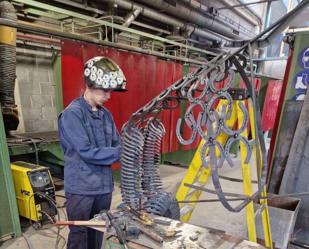 De 17-jarige Keano Grootjans zit in zijn zevende en laatste jaar lassen-monteren aan Via Tienen. Als eindwerk bedacht hij de creatie van een paard uit hoefijzers. Het steigerende paard dat hij voor ogen heeft, is 2,64 meter hoog en 1,20 meter lang. ‘Wij hebben thuis tachtig paarden en mijn moeder kwam aan de keukentafel met het idee aanzetten’, vertelt de jonge lasser aan Vraag&Aanbod.