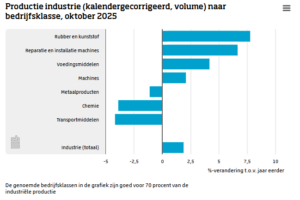 Producten van de aardolie-industrie waren in september 31,2 procent goedkoper dan in september 2023. In augustus lagen de prijzen 18,1 procent lager dan een jaar eerder. Ook in de chemische industrie hangt de afzetprijs over het algemeen samen met de olieprijs. De afzetprijzen van de chemische industrie waren in september 1,1 procent lager dan een jaar eerder. In augustus lagen de prijzen 0,6 procent hoger jaar op jaar.