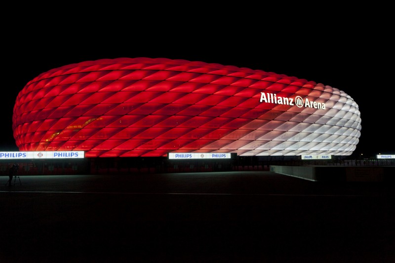 FC Bayern München opende het nieuwe voetbalseizoen op spectaculaire wijze: Philips en de Duitse voetbalkampioen onthulden de nieuwe ledverlichting van de Allianz Arena. Het innovatieve verlichtingssysteem wordt digitaal bestuurd en kan 16 miljoen kleuren weergeven. Daarmee wordt de Allianz Arena de ‘Ster van het Zuiden’, Het grootste Europese stadion met dynamisch sfeerlicht over de hele façade.