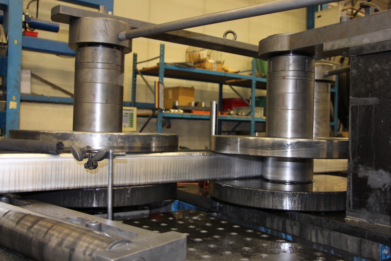 De nieuwe opdracht betekent dat BestBend nu bij het buigen van een profiel het materiaal op de buigmachine tussen drie rollen plaatst. ‘Die machine hebben we zodanig aangepast, zodat het profiel in één beweging zodanig door deze rollen wordt getrokken, dat dit resulteert in het gewenste profiel met positieve en/of negatieve buigingen. Het profiel wordt met andere woorden naar boven of onder gebogen, mét beide buigingen, positief én negatief, op één profiel. En dat voor 65.000 meter aan profielen.’