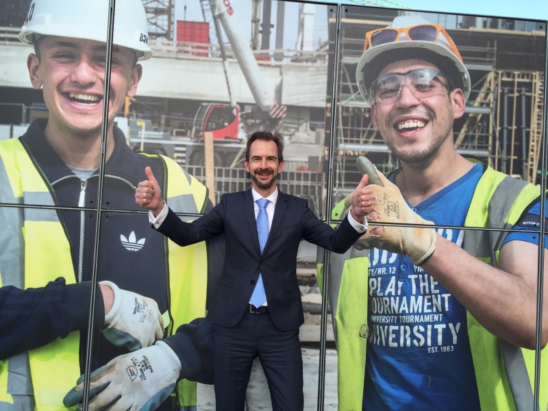 ‘De techniek dendert voort, wat je een paar jaar geleden op school hebt geleerd is nu achterhaald. ‘Voor mensen die het gaan maken’ is het thema. Die moet je dan wel opleiden of kwalitatief naar een hoger niveau brengen. Het niveau in de bouw stijgt. We zitten echt op MBO-plus. Op de beurs laten we jonge mensen zien wat de bouw hen allemaal te bieden heeft. In navolging van de sector zeggen wij: kom werken in de bouw. De bouw is het waard, en jij ook.’