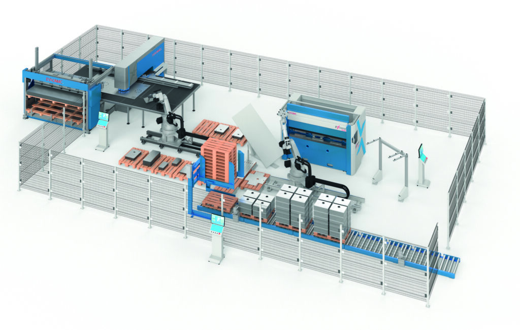 Juist nu steeds bedrijven hun productieprocessen automatiseren, presenteert de Italiaanse fabrikant van plaatbewerkingsmachines Euromac haar vernieuwde productielijn voor volledig geautomatiseerde pons- en buigbewerkingen.