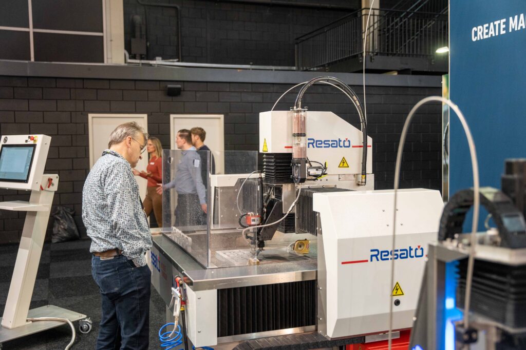 Resato Waterjet Technology greep onlangs de Metavak aan om verschillende innovaties te tonen aan het publiek. Blikvanger op de stand was de nieuw ontwikkelde ACM1010, de kleinste waterstraalsnijtafel die Resato tot nu toe maakte.
