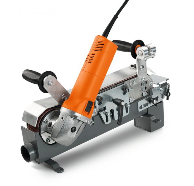 Met hun slijpband van 50 millimeter breed en één meter lang bereiken ze bij het slijpen van een lasnaad een circa drie keer hogere afname dan een haakse slijper met een vergelijkbaar slijpmiddel. Met een gewicht van 5,6 kilogram zijn ze nauwelijks zwaarder dan een grote haakse slijper en kunnen beter worden geleid. Omdat de slijpband op de lasnaad wordt gezet en met betrekkelijk weinig druk in lengterichting wordt geleid, zijn ze zeer comfortabel in gebruik. Handgeleide bandslijpmachines zijn bedoeld voor de voorbereiding van lasnaden, voor het afschuinen en voor het betrouwbaar slijpen van alle soorten lasnaden. Bovendien worden ze gebruikt om radiussen te slijpen, roestige vlakken af te slijpen of te satineren. Ook buizen en profielen kunnen comfortabel worden bewerkt. Bij de fabrikant van elektrisch gereedschap FEIN zijn twee modellen voor de bewerking van staal, roestvrij staal, gietijzer en aluminium verkrijgbaar. Ze werken met 1-fase-wisselstroom en op normale stopcontacten. De handgeleide bandslijpmachine GHB 15-50 heeft een afgegeven vermogen van 1500 watt en werkt met een constant toerental van 8500 omwentelingen per minuut. Speciaal voor de bewerking van roestvrij staal is er de handbandslijpmachine GHB 15-50 INOX met een regelbaar toerental van 2500 tot 7900 omwentelingen per minuut. Deze is ook geschikt voor gebruik met vliesbanden en slijpt roestvrijstalen oppervlakken in één stap naar een satijnfinish. Beide machines kunnen met een tafelhouder via drie fixeerpunten worden omgebouwd naar een stationaire bandslijpmachine.