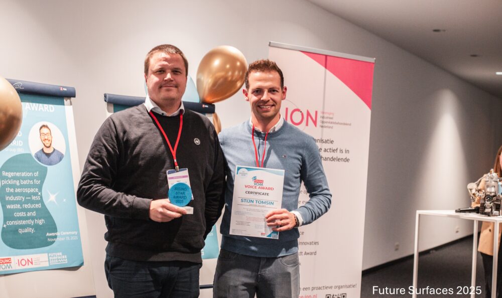 Tijdens Future Surfaces zijn op woensdag 19 november de Young Professionals Awards 2025 uitgereikt. Vereniging ION uit Nederland en Young VOM uit België bekronen daarmee jonge vakmensen die met vernieuwende projecten en sterk engagement bijdragen aan de ontwikkeling van de oppervlaktebehandelingssector. De prijzen benadrukken de gezamenlijke inzet van beide landen voor innovatie en duurzame oplossingen. […]