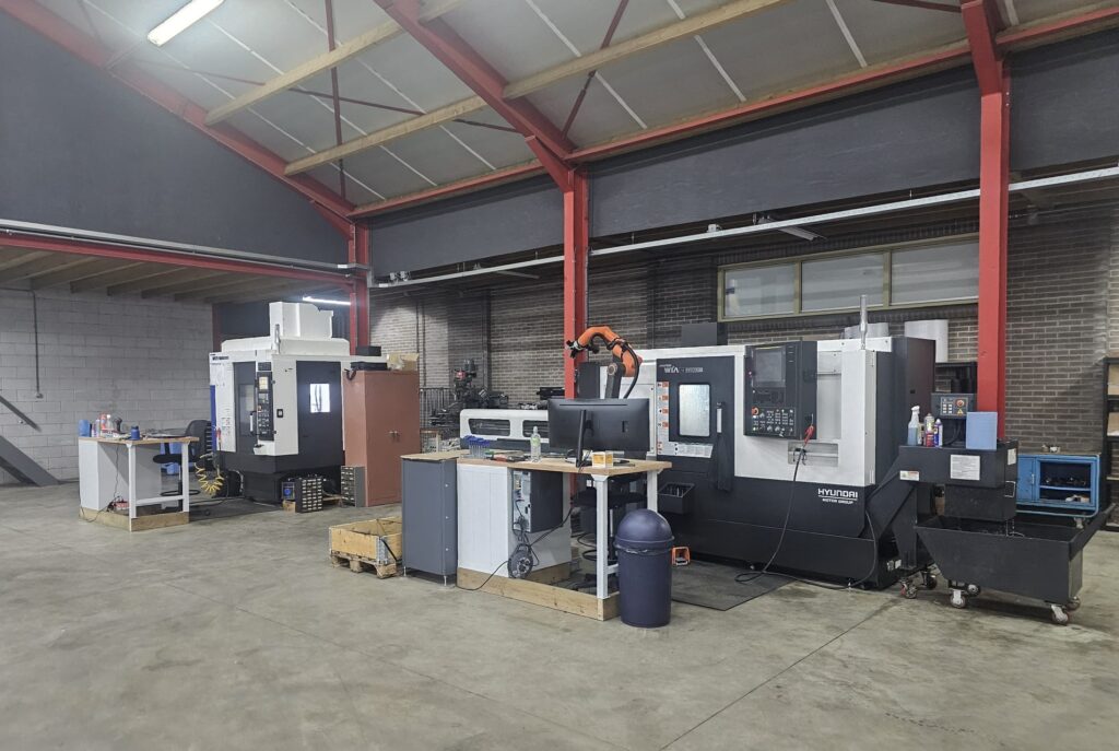 De Hyundai Wia 160A draaibank, die recent in gebruik genomen werd, komt ter vervanging van de Cholchester draaibank waarmee het allemaal begon. ‘Deze was kapot en de nieuwe machine is bovendien sneller en veel nauwkeuriger’, vertelt De Brouwer, die met zijn metaalbedrijf gespecialiseerd is in prototyping en enkelstuks. Door een recente investering in een cobot kan het ook kleine series aan. ‘Deze cobot zorgt voor de belading van onze Hyunday Wia draaibank waardoor we ook in de nacht productie kunnen draaien’, vertelt hij.